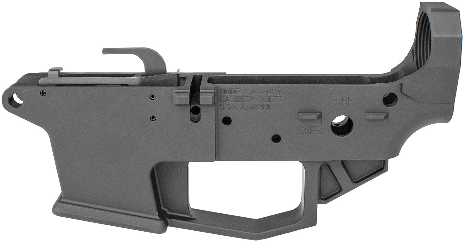 Angstadt Arms’ 0940 Lower Receiver is machined from 7075-T6 billet aluminum with a matte black hard-coat anodized finish and works with any mil-spec upper receiver. It features a flared magwell, integrated, oversized trigger guard and a last round bolt hold open. The 0940 lower receiver is compatible with Glock magazines. NOTE: Requires a lower parts kit, buffer & stock of your choosing to complete.