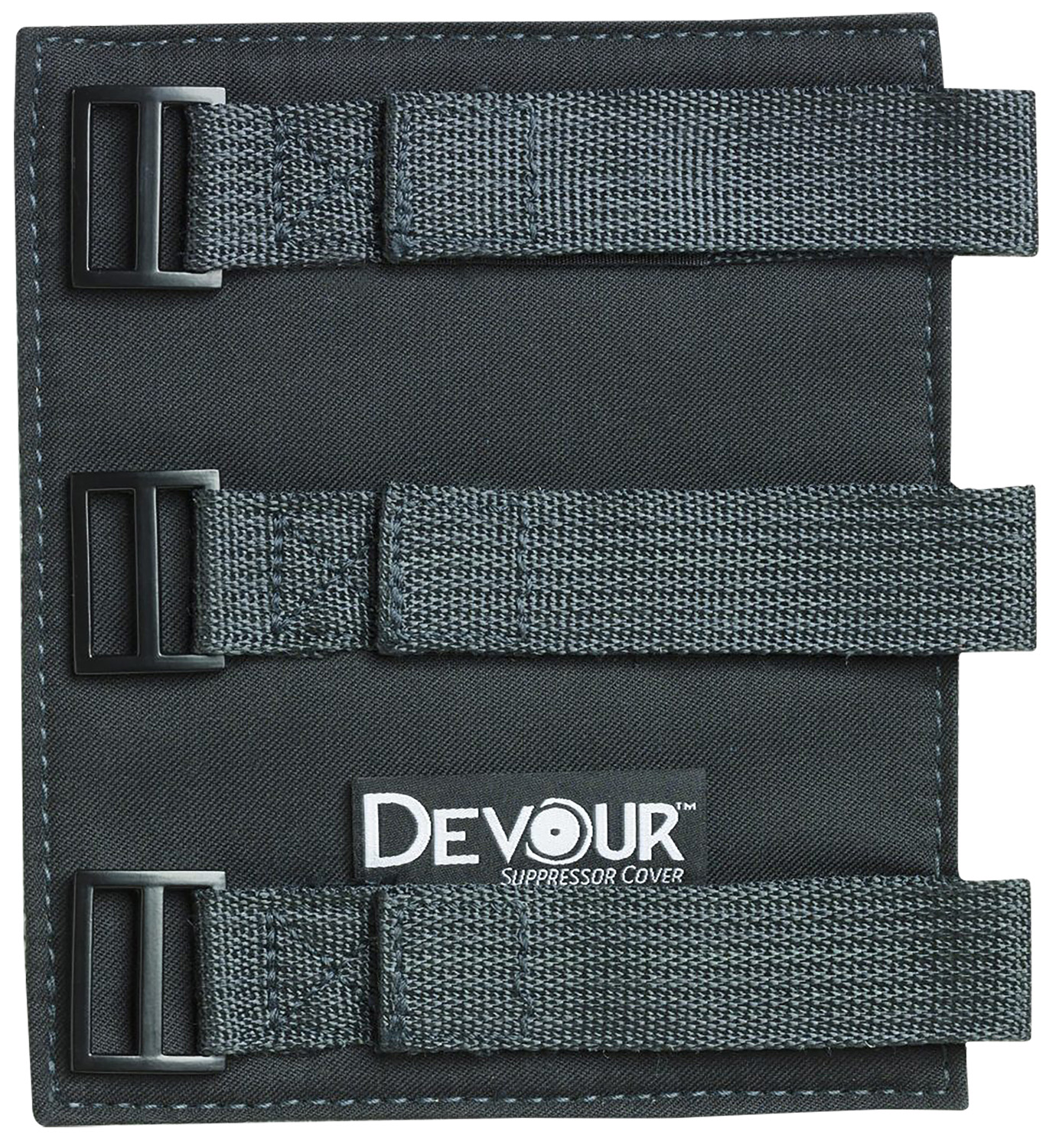 The Devour Suppressor Cover protects yourself and your gear against suppressor heat. The Devour cover also helps to mitigate optical mirage. As an added benefit, it protects your silencer from scratches and dings that come with normal use. It is easy to put on, allowing you to install or remove a suppressor while still hot. This prevents you from getting burned while letting you shoot comfortably from different positions.The Devour Suppressor Cover features include an industrial silica-coated, non-slip design held tight with adjustable straps. The carbon fiber felt is e-Glass 1800 F rated and a noncombustible material that is ideal for high-temperature protection.