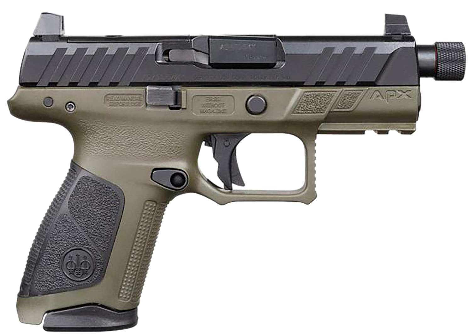 THE APX Beretta updated their line and turned the APX A1 Tactical into a compact-size option for personal defense. The APX A1 Compact Tactical features a threaded muzzle, suppressor ready ensuring optimal performance even in stealthy operations; enhanced with blacked-out suppressor height sights so your sight picture remains crystal clear while operating in suppressed mode; red dot optic-ready design, compatible with all major MRDS; reversible mag release; ergonomics with interchangeable backstraps, allowing you to tailor the grip; extended beavertail not only offers superior recoil control but also enhances comfort during extended shooting sessions and higher trigger undercut.