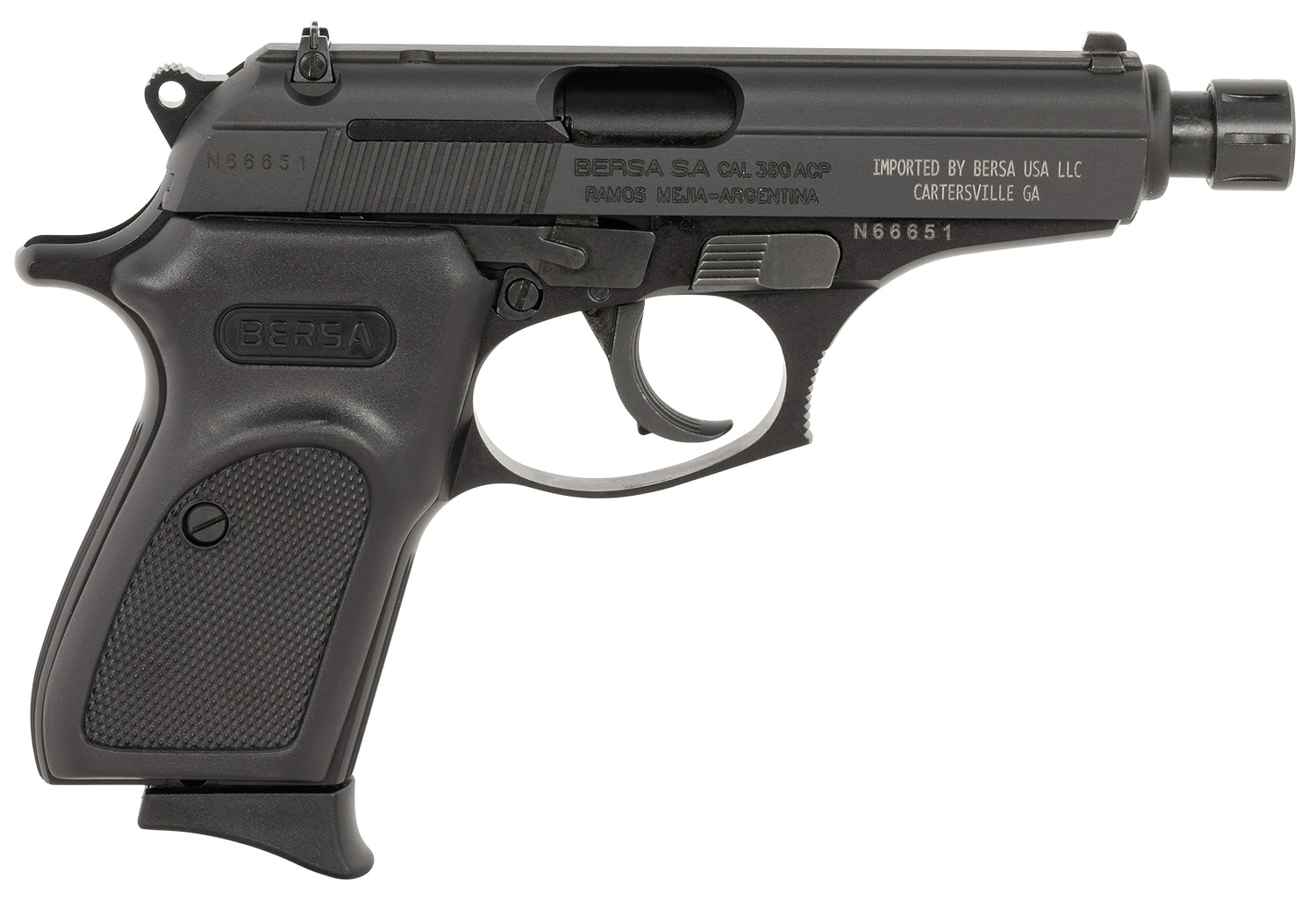 Bersa T380M8X Thunder Micro-Compact Frame 380 ACP 8+1 3.50″ Black Steel Threaded Barrel, Matte Black Steel Serrated Slide, Matte Black Aluminum Frame, Black Rubber Grip, Right Hand