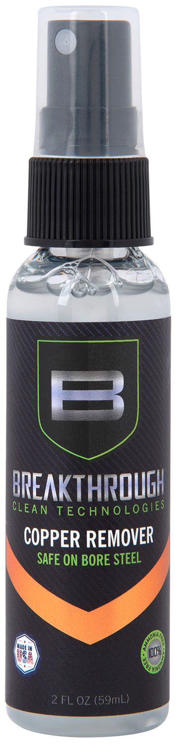 Breakthrough Cleans Copper Remover safely and effectively removes copper fouling and is 100% petroleum and ammonia free. Its virtually odorless and biodegradable formula easily removes copper fouling and minimizes future copper build up without giving off any harmful or strong offensive odors found in other copper removers. Usable on all types of bore steel and wont etch or harm the barrel.