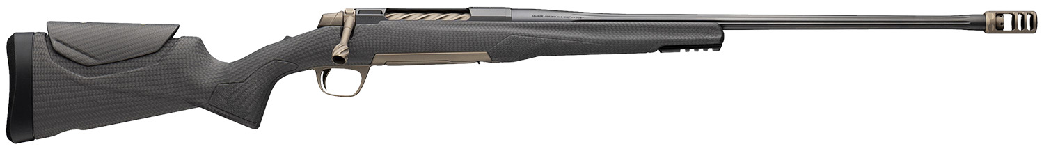 The Browning X-Bolt 2 Pro SPR premium bolt-action hunting rifle for big game. Features a carbon fiber stock with adjustable comb; two-tone styling, matte blue barrel and receiver, bronze Cerakote bolt, bolt handle, bottom metal and Recoil Hawg muzzle brake; spiral fluted bolt; aluminum bolt handle reduce rifle weigh; shorter, spiral fluted barrel with 5/8″-24 muzzle threads is optimized for use with a suppressor. X-Lock Scope Mounting System uses four screws per base for rock-solid attachment to the receiver.Includes Recoil Hawg muzzle brake and thread protector.