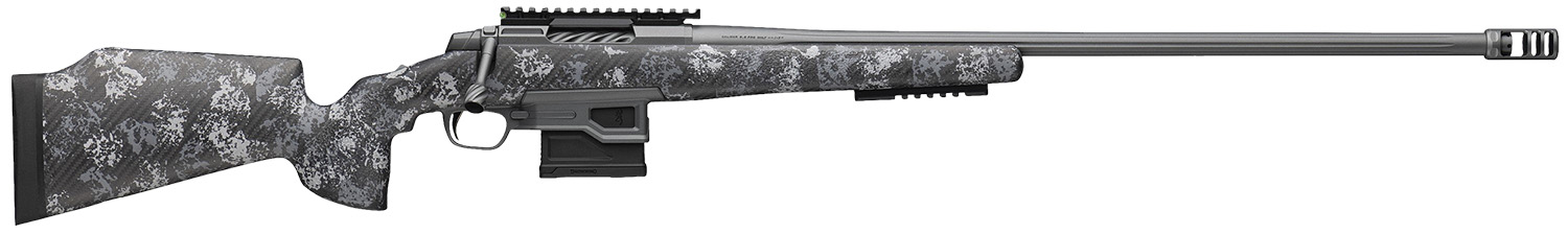The X-Bolt 2 Pro LR SPR top-tier, precision bolt-action rifle designed for the big game hunting and long range target shooting. Featuring a Lightweight Pro receiver with Cerakote Carbon Gray finish; spiral fluted bolt with ultralight aluminum bolt handle; fluted, heavy sporter contour barrel is optimized for suppressor use; Recoil Hawg muzzle brake; carbon fiber McMillan Game Warden stock with Urban Carbon Ambush camo; Picatinny bipod rail and an adjustable DLX Trigger.