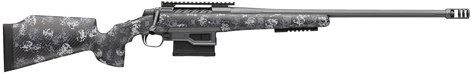 The X-Bolt 2 Pro LR SPR top-tier, precision bolt-action rifle designed for the big game hunting and long range target shooting. Featuring a Lightweight Pro receiver with Cerakote Carbon Gray finish; spiral fluted bolt with ultralight aluminum bolt handle; fluted, heavy sporter contour barrel is optimized for suppressor use; Recoil Hawg muzzle brake; carbon fiber McMillan Game Warden stock with Urban Carbon Ambush camo; Picatinny bipod rail and an adjustable DLX Trigger.