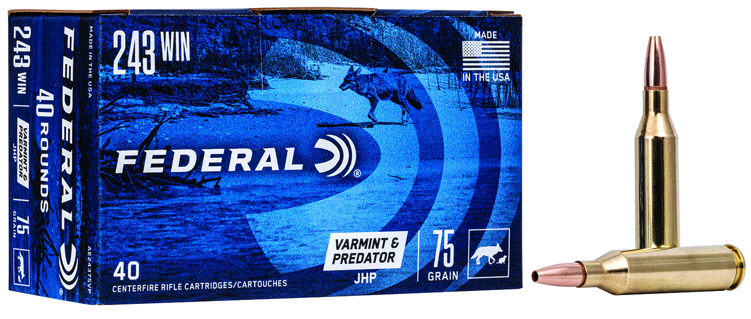 Federal AE24375VP American Eagle Varmint & Predator 243Win 75gr Jacketed Hollow Point 40 Per Box/5 Case