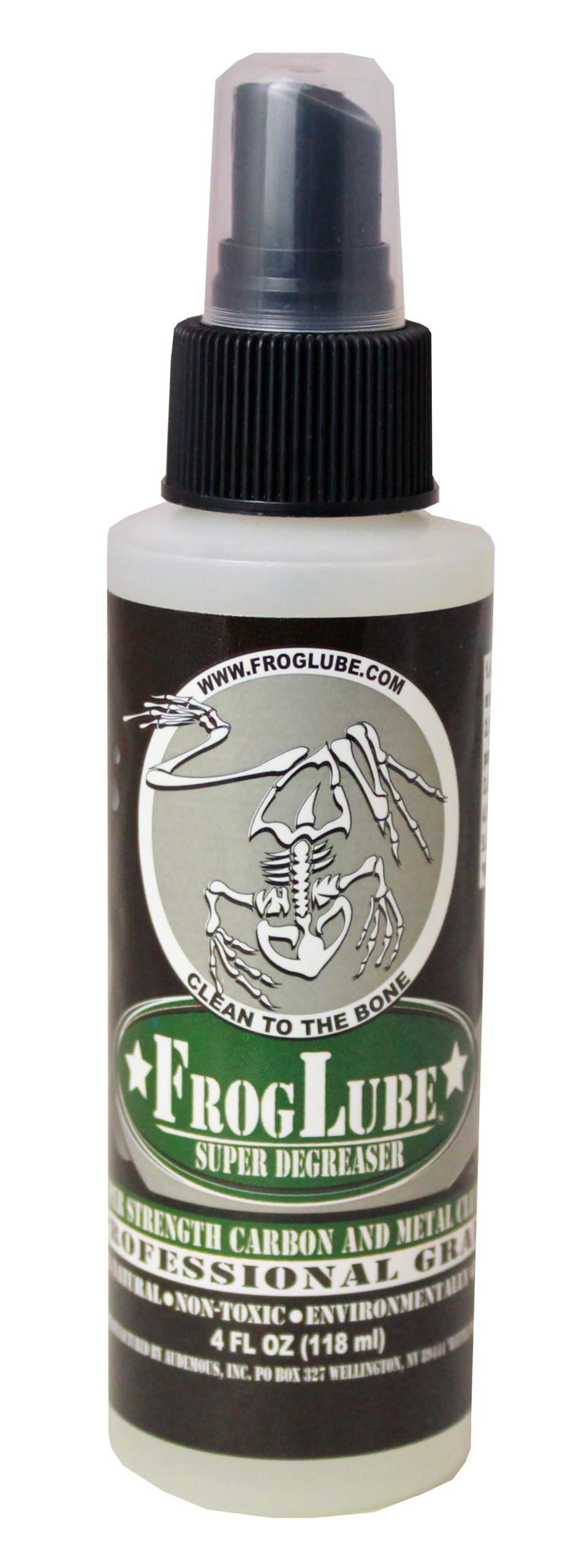 Clean your weapons like never before and watch carbon just fall out of your weapon. The FrogLube Super Degreaser removes all petroleum based chemicals, solvents, lubricants, and carbon, ensuring a thorough FrogLube treatment of your whole firearm. Even though this is tough on fouling, it is safe on firearms. The FrogLube Super Degreaser has been specifically formulated to allow for varying the cleaning strength by adding water in accordance with a dilution schedule. The Super Degreaser can also be used in ultra sonic cleaners.