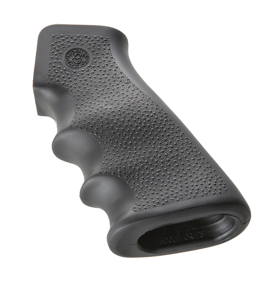 Hogue rubber grips are molded from durable synthetic rubber that is not spongy or tacky, yet provides a soft recoil absorbing feel without affecting accuracy. The flexibility of the materials and molding process produces rubber grips with features that out perform all other makes. It is molded with a reinforcing insert directly engaging with the firearm frame for a rock-solid grip-to-frame fit. The Cobblestone texture provides an efficient non-slip, non-irritating stippling pattern. This model has a black finish and is compatible with AR-15.