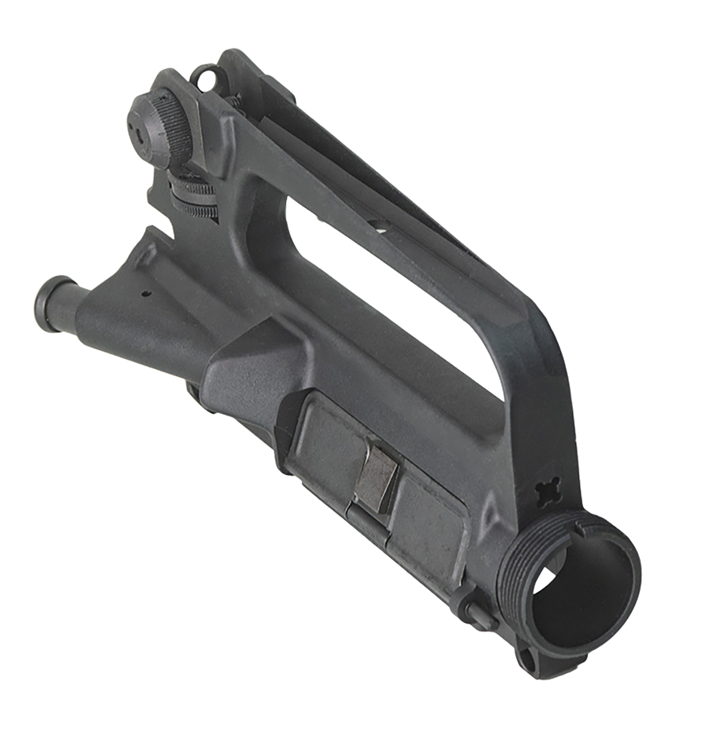 A2 carry handle style, complete with cuts for mounting A2 rear sight (windage and elevation). Features shell deflector, forward assist housing, and provisions for installing an ejection port cover. Precision machined from a premium-grade 7075 T6 aluminum forging and hard coat anodized for extra strength, with a tough, scratch-resistant Teflon coating. Does Not feature M4 Style Cuts. Complete with Dust Cover, Round Forward Assist and A2 Rear Sight Kit installed!
