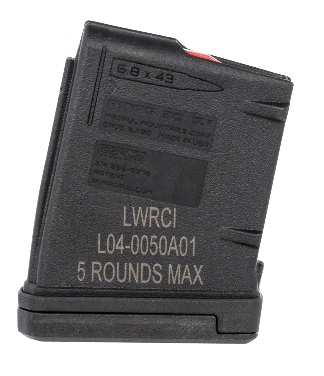 Magpul’s M3 polymer technology and manufacturing processes for enhanced strength, durability, and reliability to exceed rigorous military performance specifications. The over-insertion stop on the spine helps ensure that the magazine will not over-insert on compatible weapons. USGI-spec stainless steel spring for corrosion resistance and field compatibility. It features aggressive non slip texture at the front and rear for superior grip. Strong, slim floorplate design that retains positive magazine handling and easy disassembly. This 30-round 6.8 SPC PMAG is for LWRCI SIX8 platform rifles.