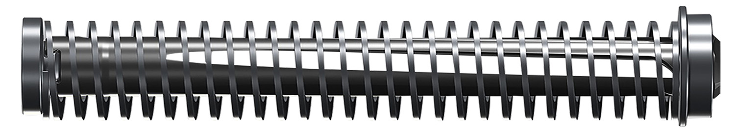 Screwless design of the Compressor Guide Rod. The dovetail interface is captured by the spring, creating a simple and secure lock-up. Flutes along the guide rod allow the spring to move with less friction for smoother cycling. The heat treated guide rod has a slick, durable and corrosion-resistant Nitride finish.