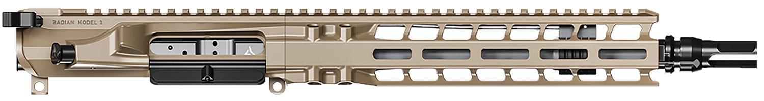 The Complete Upper is constructed of billet machined 7075-T6 aluminum with proprietary Extended aluminum hand guard w/ Magpul M-LOK mounting system and integrated upper/hand guard stainless steel anti-rotation pin. Its match grade 416R stainless steel barrel has polished crown/feed ramps, and is threaded. The upper also utilizes enhanced black nitride M16 BCG, lightweight forward assist, Radian Raptor-SD suppressor-optimized ambidextrous charging handle, and a direct impingement gas system.