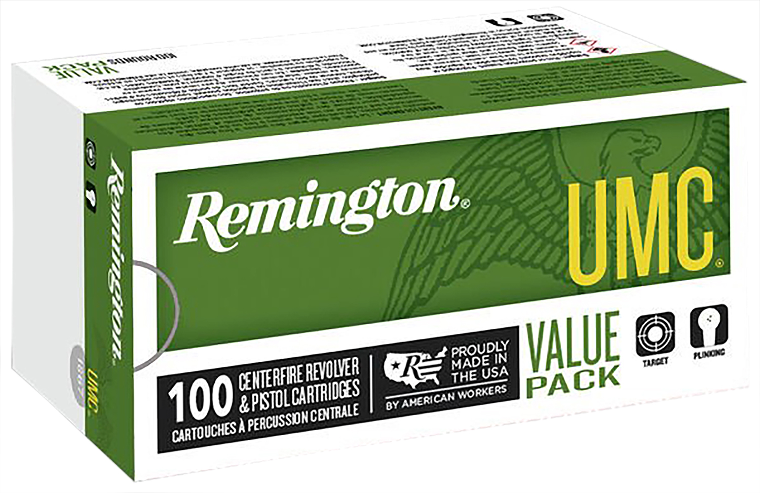 All UMC handgun ammunition is American-made, using first-quality, factory-fresh brass, and clean-shooting Kleanbore primers to provide the best value for practice, personal defense, and hunting.