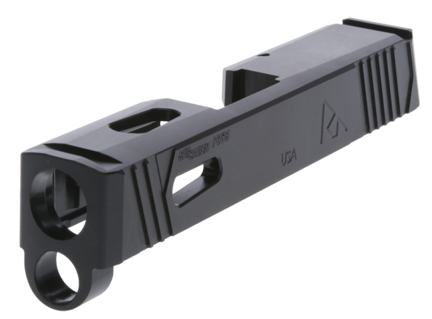 The Sig Optic Ready Slide is a match-grade precision upgrade slide with front & rear serrations for easy slide manipulation. It is CNC machined from 416 stainless steel with recessed slide cuts for compatibility with RMR or other optics. This slide also has QPQ thermo-chemical finish, window cuts for efficient cooling & airflow.