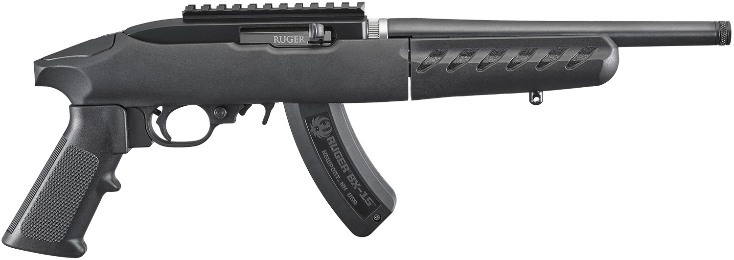 The Ruger 22 Charger pistol features a cold hammer-forged, threaded barrel with 1/2″-28 thread pattern. It features a standard ergonomic pistol grip that can be easily replaced with any AR-style grip; Picatinny rail; takedown-style stock which quickly and easily breaks down into two sections for convenient storage and transport. Compatible with the Silent-SR sound suppressor. Includes an adjustable bipod and BX-15 magazine.