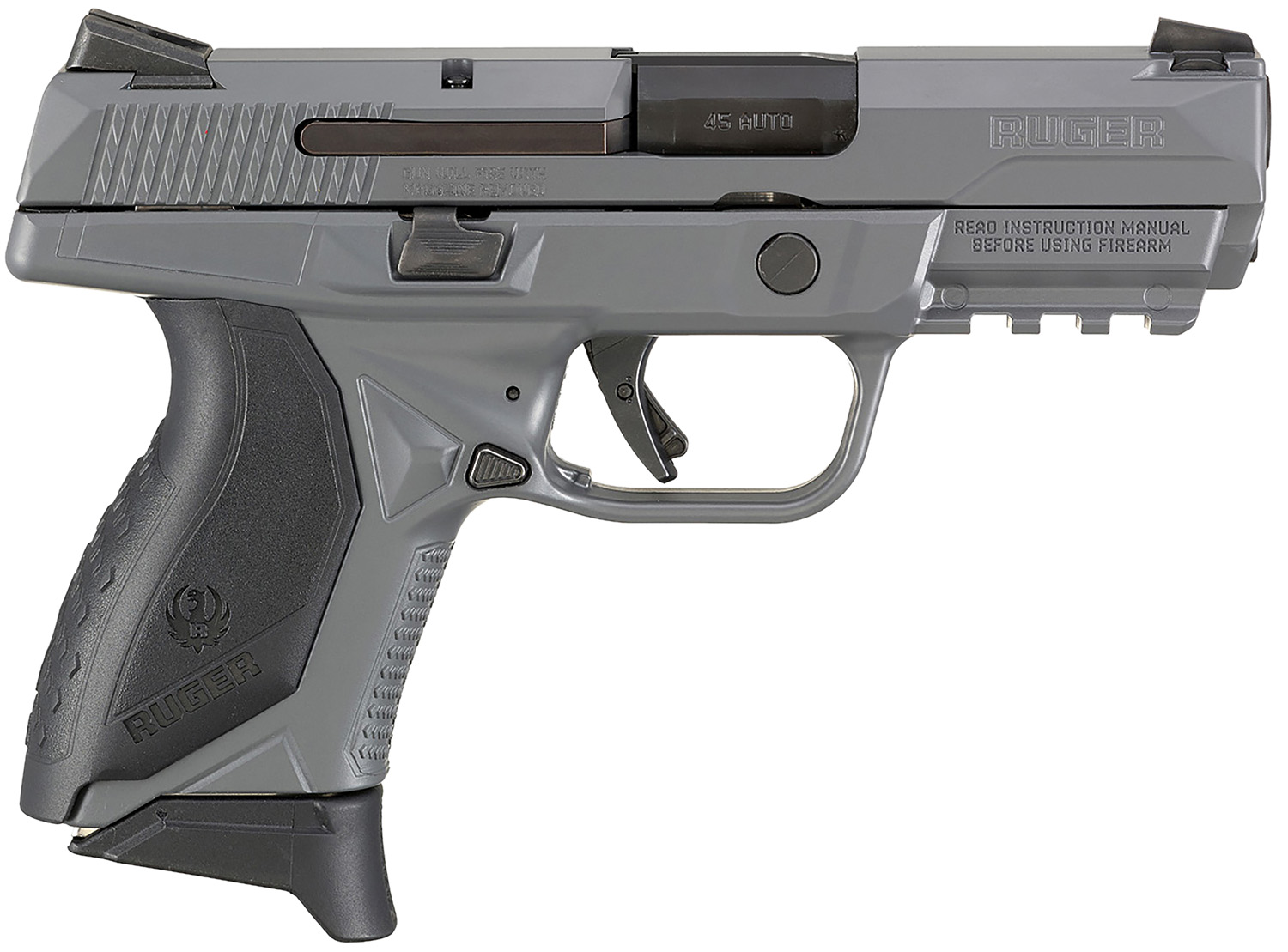 Ruger 8649 American Pistol Compact Pro 45 ACP 3.75″ Barrel 7+1, Elite Concrete Cerakote Frame & Slide, MIL-STD-1913 Picatinny Mounting Rail, Loaded Chamber Inspection Port, Trigger Safety