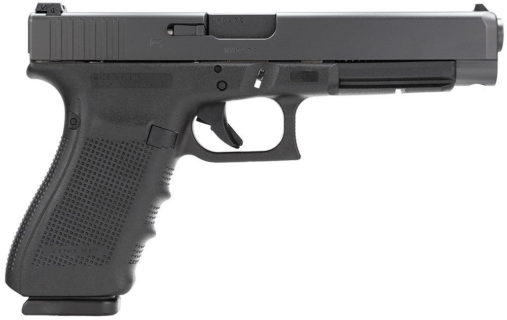 The Glock 41 Competition is designed to maximize sight radius while achieving perfect weight distribution and balance. It features Glock’s Safe Action system which provides a consistent trigger pull from the first to the last round. The three automatic independently operating mechanical safeties are built into the fire control system of the pistol. All three safeties disengage sequentially as the trigger is pulled and automatically reengage when the trigger is released. The frame is made of polymer with hardened steel guides. It features an ideal grip angle and low weight. The slide stop lever and the magazine catch are easily operated with the shooting hand. The advanced surface treatment of the slide results in optimal hardness by considerably reducing wear and tear and it makes it corrosion resistant, even when operating in saltwater conditions. The matte surface minimizes light reflection. The barrel is mechanically locked and cold-hammer forged. It also has the same advanced surface treatment as the slide. Its extractor serves as a loaded chamber indicator to comply with the laws of certain states and its position may visually and physically indicate whether there is a cartridge in the chamber of the pistol. Includes 3 magazines, mag loader, cleaning set, pistol case and gun lock.