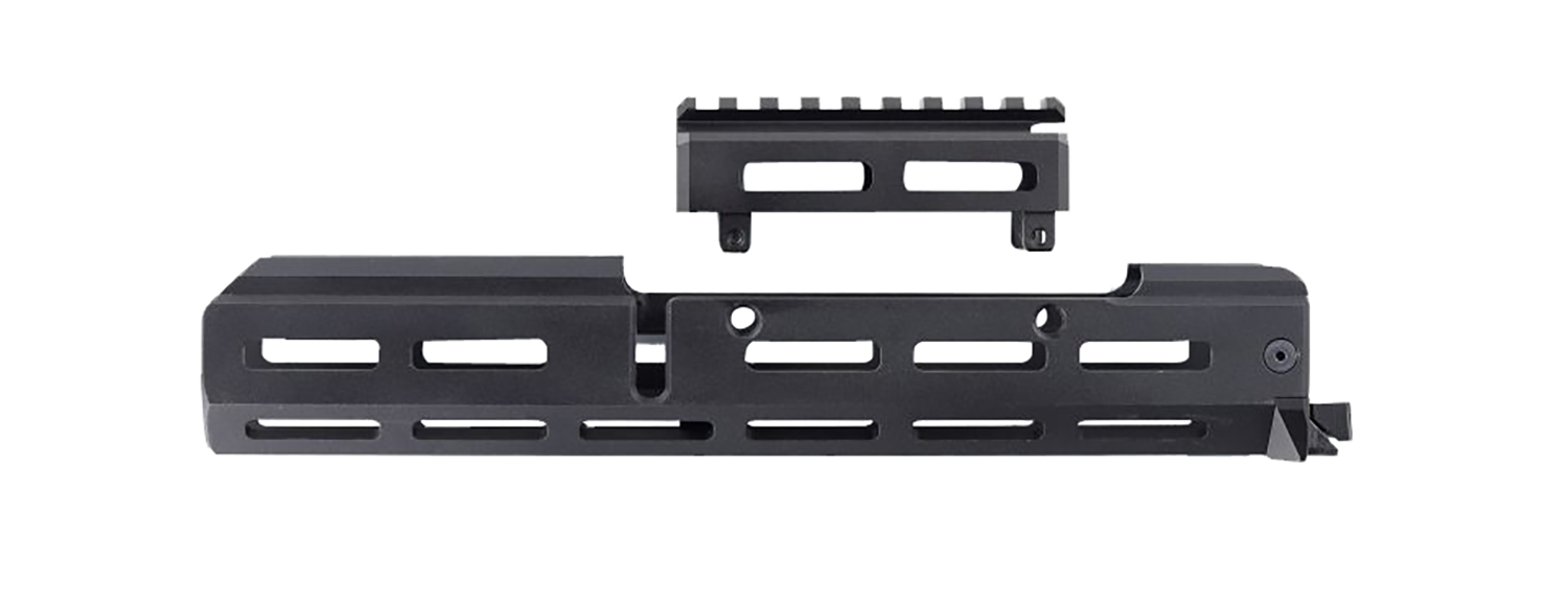 Our new K-rail is a game changer. This M-LOK Handguard for AKs is comprehensive and user friendly to install, from the adjustable handguard alignment system to the different versions which accommodate a preferred sling attachment style. No gunsmithing required, though you may need minor fitment or filing depending on your rifle. 5 sided M-LOK, extended handguard length shields users hand from barrel and allows for more accessories. Allows for optic mounting on top rail, works with factory gas tube.