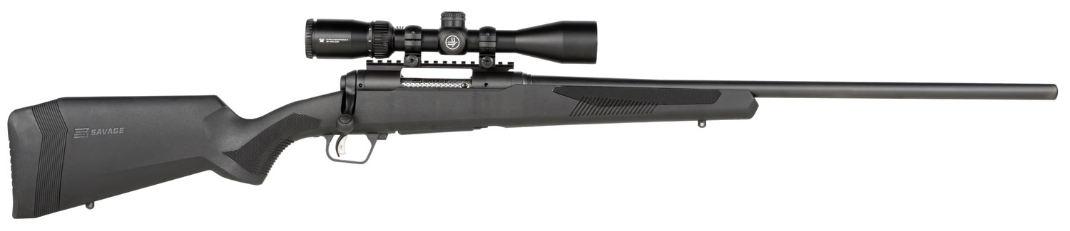 The Apex Hunter XP pairs a Model 110 rifle with a Vortex Crossfire II 3-9x40mm scope that comes mounted, bore-sighted and ready to hunt. The platform provides accuracy and adjustability like no other package rifle thanks to the Savage AccuTrigger, thread-in head spacing, floating bolt head and precision button-rifled barrel. Plus, its length-of-pull can be easily adjusted to fit any hunter for better comfort and consistency. Includes Vortex Crossfire 3-9x40mm and Vortex medium rings.