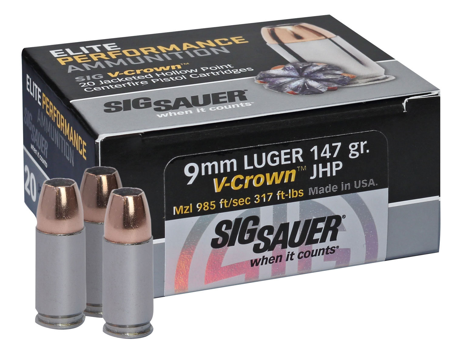 Be the first to review “Sig Sauer E9MMA320 Elite Performance 9mmLuger 147gr V-Crown Jacketed Hollow Point 20 Per Box/10 Case” Cancel reply