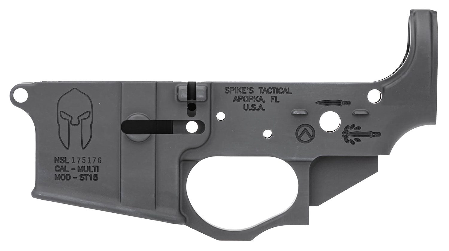 Spike’s Tactical stripped lower is made to the highest standards. Forged from 7075 T6 aluminum, it supports multi-calibers, black hard coat anodized finish, low shelf, and is RDIAS compatible. This model has a Spartan Helmet logo. NOTE: Requires a lower parts kit, buffer & stock of your choosing to complete.