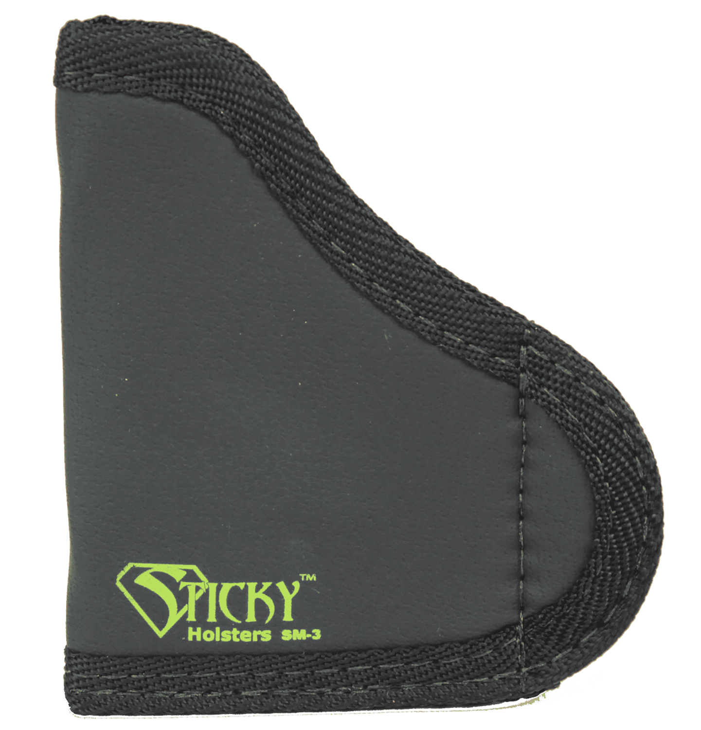 Sticky Holsters allow you to deploy and adjust your firearm in seconds. No bulky clips or straps to get in the way. Our lightweight holsters weigh less than 3 oz., and the closed-end design keeps lint and dust out. Body heat and use conforms holster to your gun, so your holster fit will continue to improve with use. Suitable for pocket .380s with laser up to 2.75″