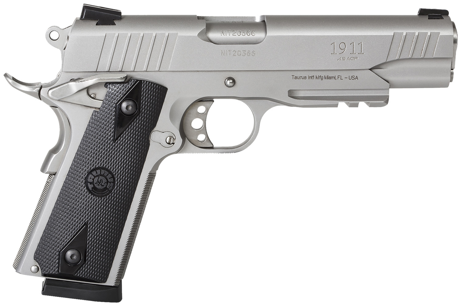 Taurus 1191109SS1 1911 45 ACP 8+1 5″ Barrel, Overall Matte Stainless Steel Finish, Picatinny Rail/Beavertail Frame, Serrated Slide & Checkered Polymer Grip Includes 2 Mags