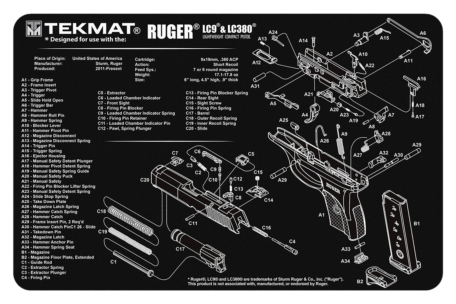 Be the first to review “TekMat TEKR17RUGERLC9 Ruger LC9 Cleaning Mat Black/White Rubber 11″x17″ Ruger LC9 Parts Diagram” Cancel reply