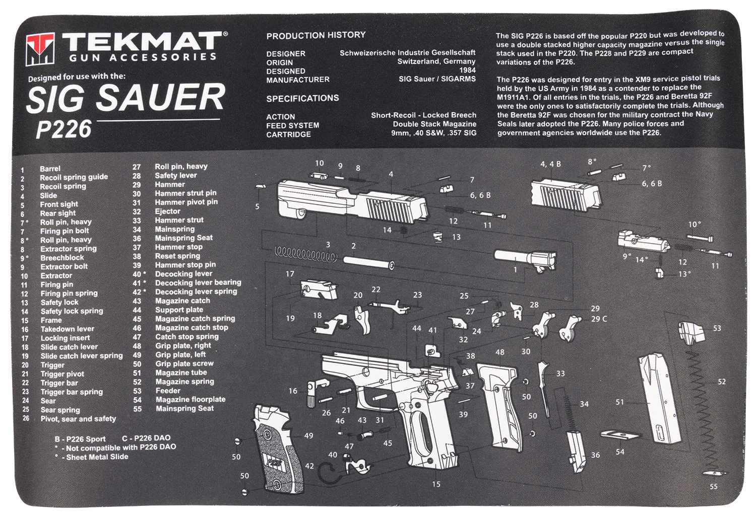 Be the first to review “TekMat TEKR17SIGP226 Sig Sauer P226 Cleaning Mat Gray/White Rubber 11″x17″ Sig P226 Parts Diagram” Cancel reply