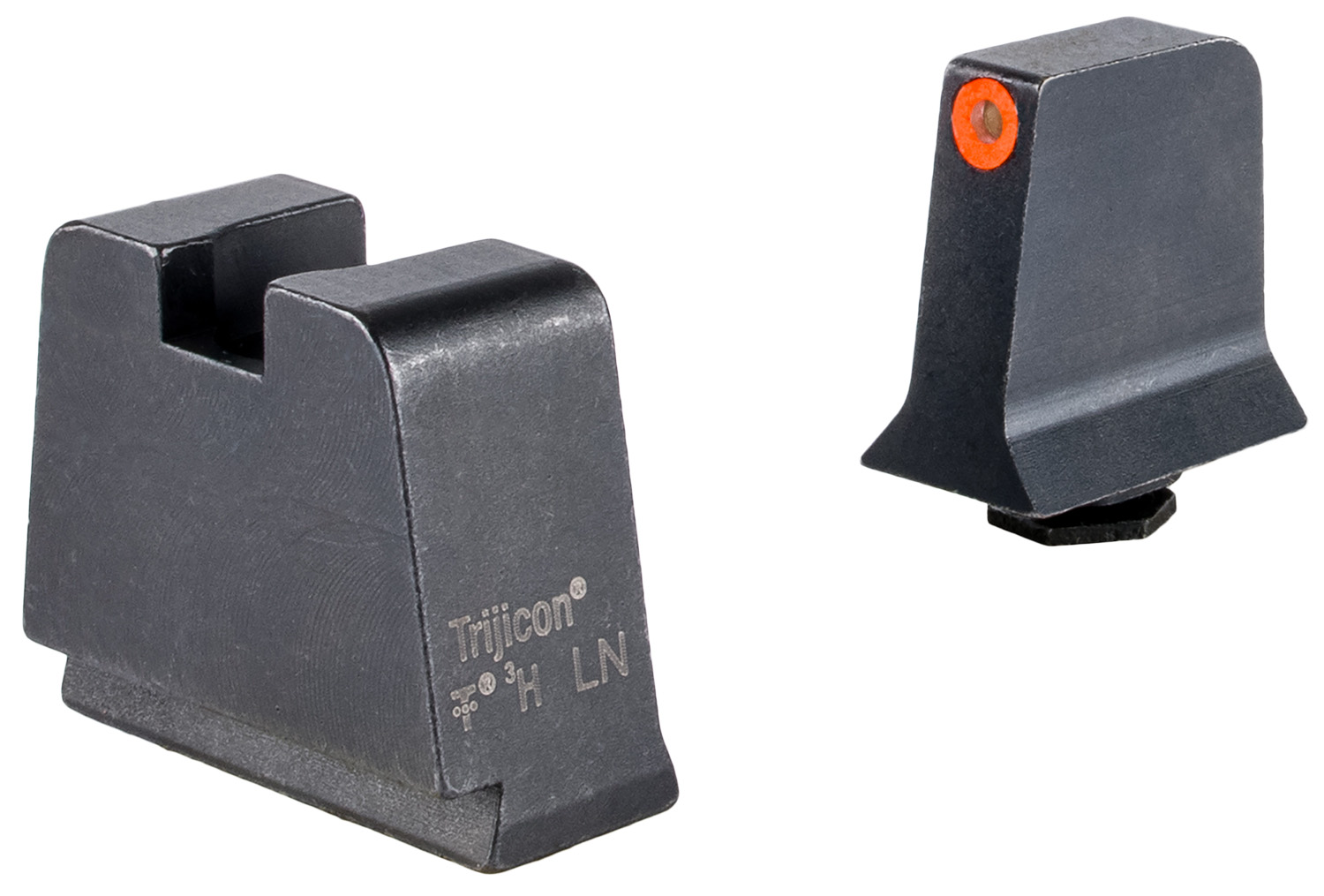 Trijicon Suppressor/Optic Height Sights continue the low-light and no-light prowess of the original Bright & Tough Night Sights. With unique versatility for the ever evolving pistol landscape, Trijicon Suppressor/Optic Height Sights are designed for pistols fitted with suppressors and also as a backup iron sight for pistol-mounted red dots Front Sight Width: 0.144″. Front Sight Height: 0.503″. Rear Sight Height: 0.554″. Fits Glock Models: 42,43,43x,43e, and 48.