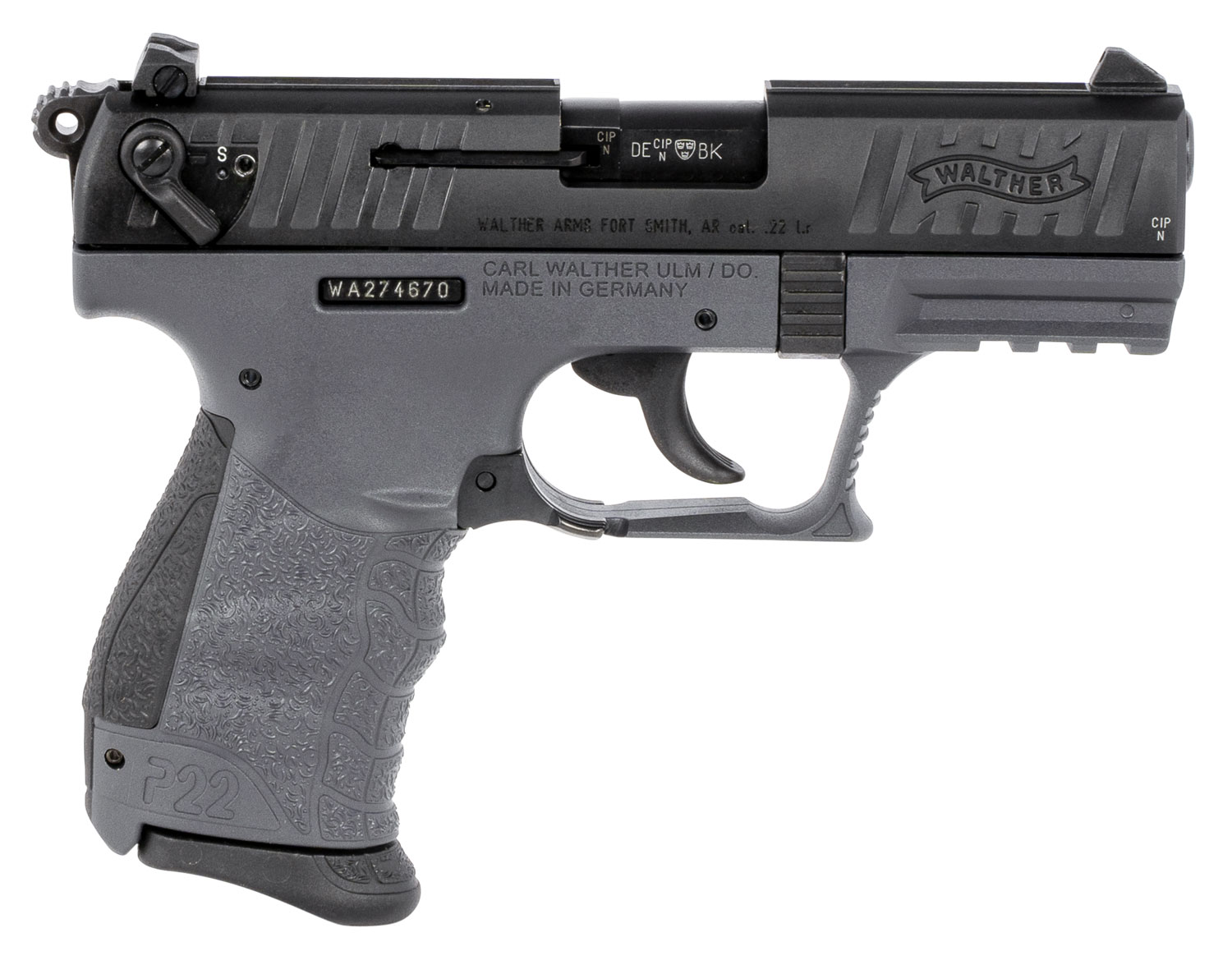 Walther Arms 5120365 P22 *CA Compliant 22 LR 3.42″ 10+1 Tungsten Gray Polymer Frame Black Steel Slide Black Polymer Grip