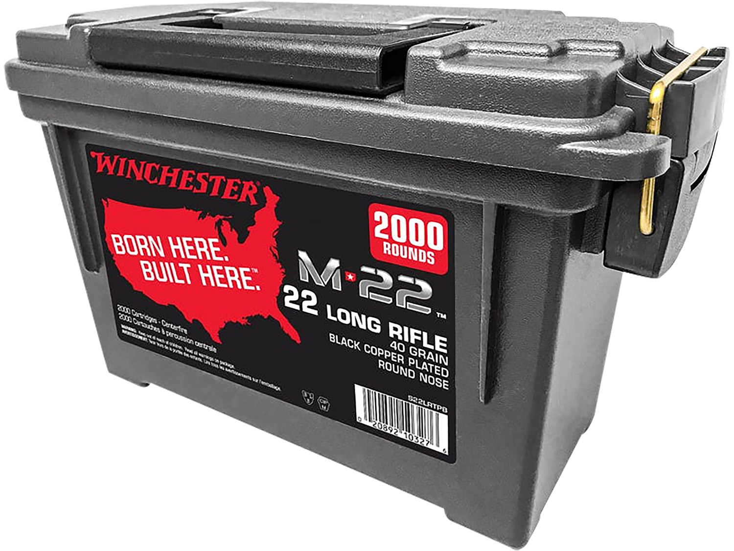 Winchester Rimfire ammunition is American-made, in reloadable brass casing and is ideal for high-volume range sessions. It comes packaged in metal ammo can. This item comes 2000 rounds per can, and 2 cans per case.